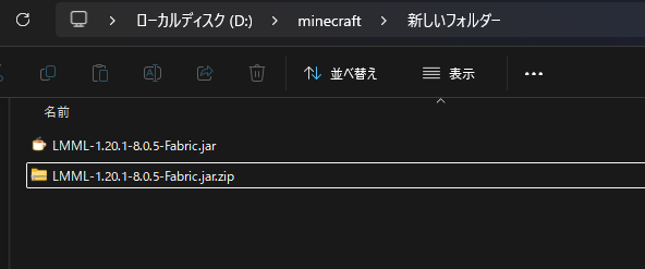 LittleMaidReBirth などの MOD を使ったことがあると、たぶんお持ちになる LittleMaidModelLoader の jar ファイル名の後ろに .zip と追記してください。ファイルを解凍することができるようになります。