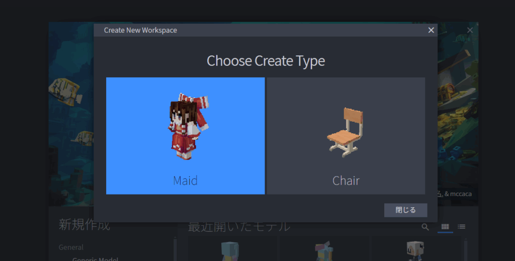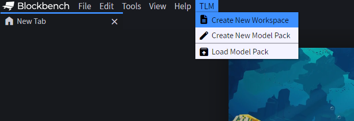 blockbench にもどり、TLM の Create New Workspace を押下します。