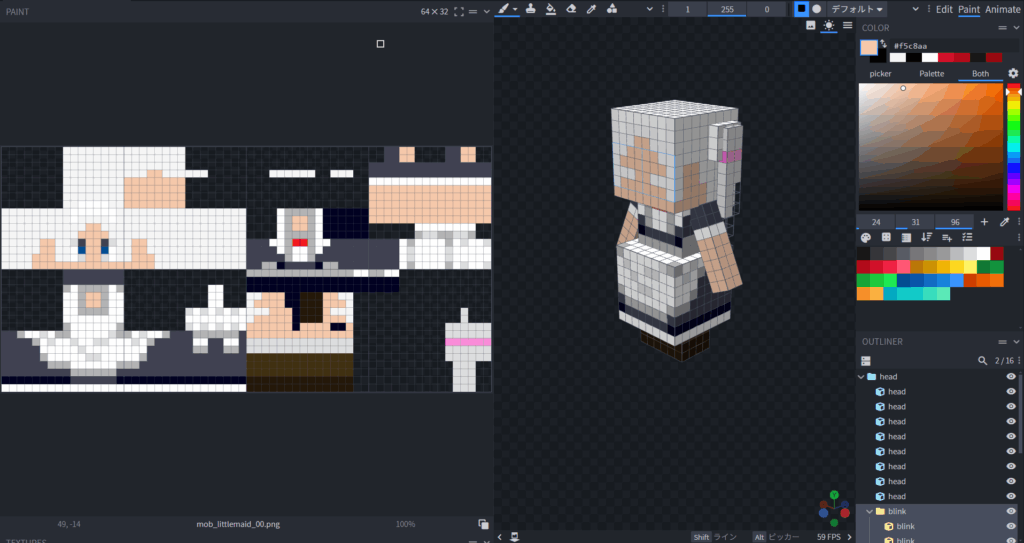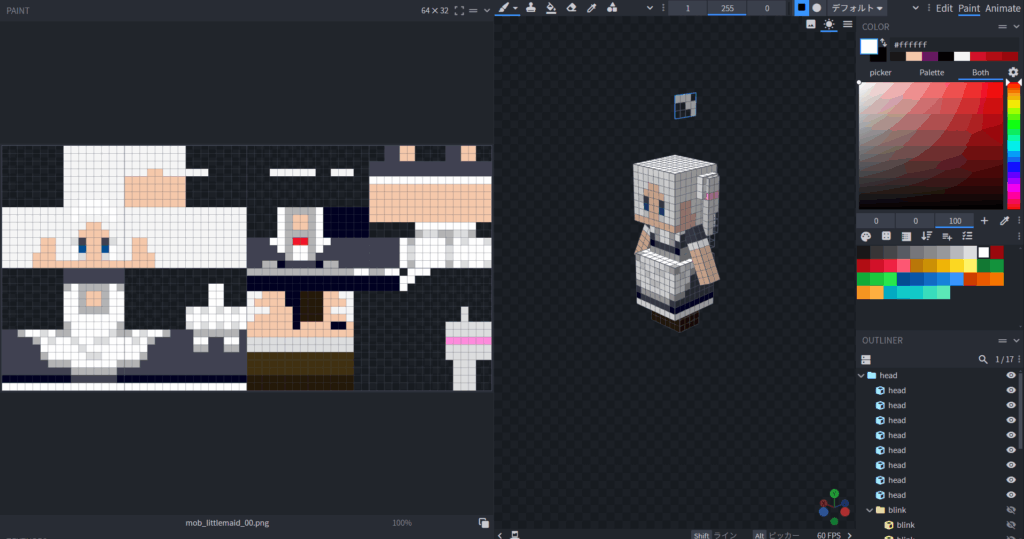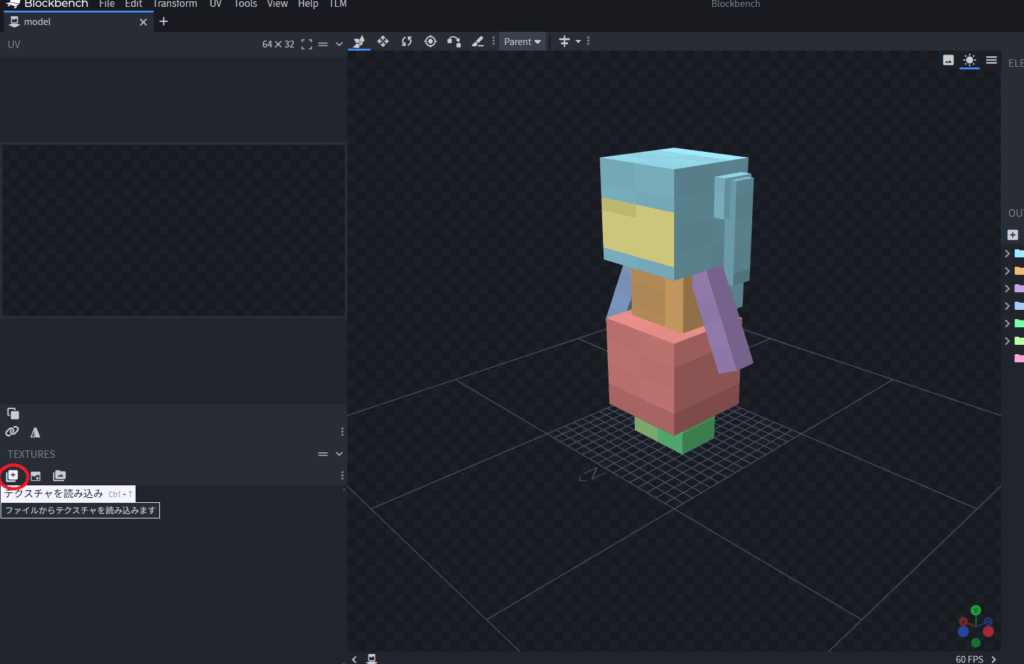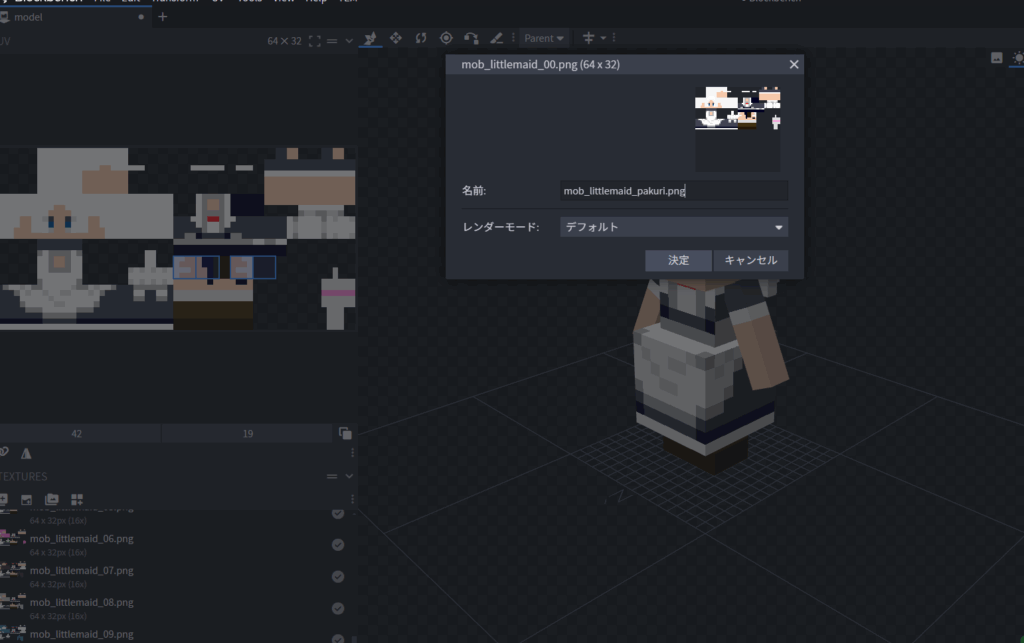 続いて blockbench でデフォルトスキンを追加する場合です。