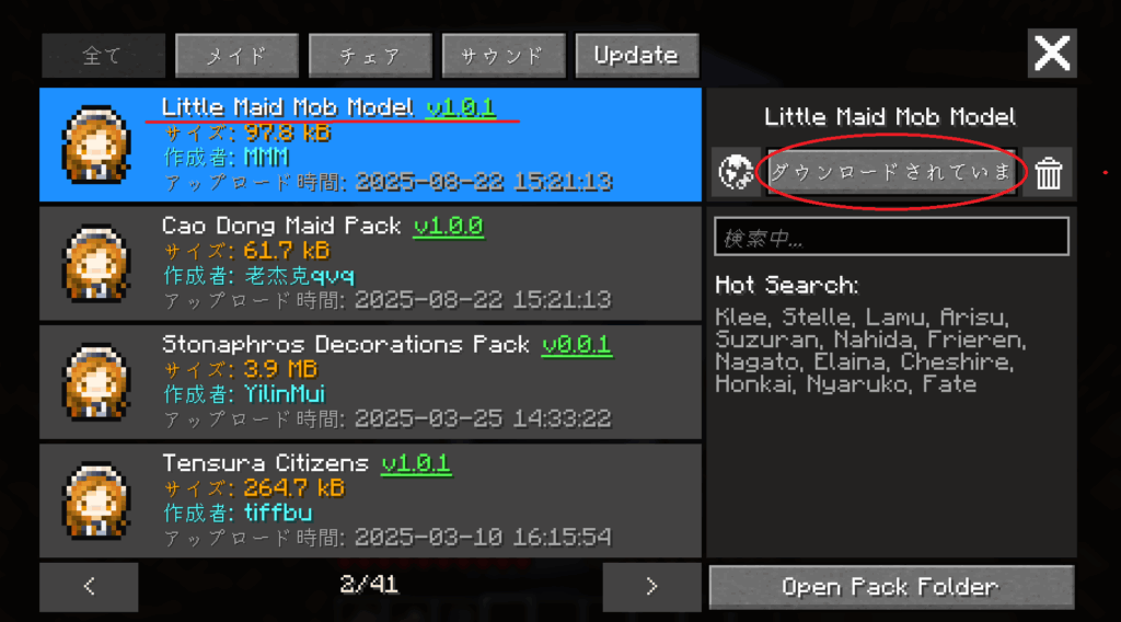 Little Maid Mob Model を選択し、ダウンロードボタンを押下します。