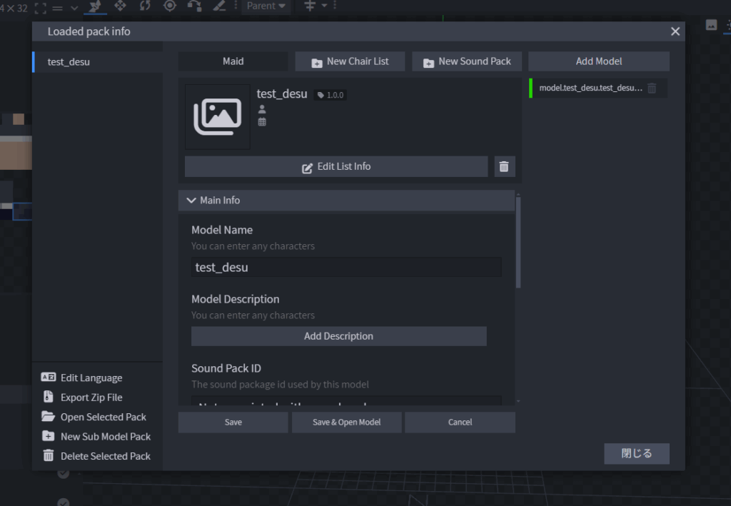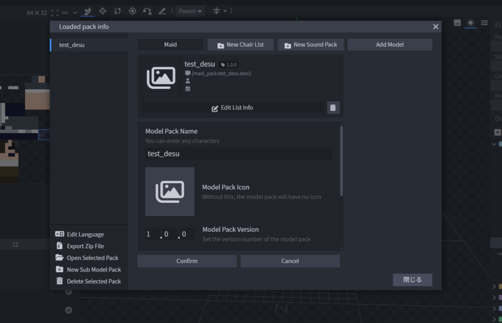 Edit List Info を押下し、 Model Pack Name に適当に名前を入力して、 Confirm 押下します。
